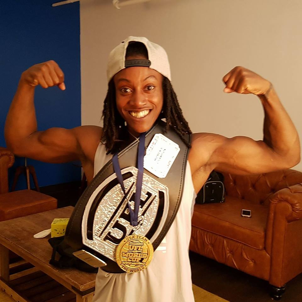 The UFL is a competition which is based in Brooklyn, New York, [and its goal is] to showcase calisthenics athletes and empower people of all ages to engage in a healthy life. For the female world champion belt (the title Simone won), I did a two-minute freestyle [set] and a rep competition. This included 8 muscle-up hop overs, 10 dips with a 35lb weight, 10 pull-ups with a 35lb weight and 8 muscle-ups.