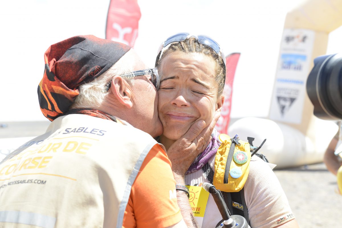 I am quite strong of mind but I remember standing at the top of a large descent and seeing the finish gantry in the foreground and just losing it. Because it meant so much. To have got there, to have made it through the night stage, to still be able to run. To have achieved a dream. I visualised all of the people who had helped me get there running alongside me. I totally lost the plot when I looked down and saw my dog Albi – my training partner (a lab crossed with a springer) – running alongside me with his ears flapping. I was pretty delusional by then. Getting a hug from the daddy of MdS, Patrick [Bauer, race director], was the icing on the cake. That finish line photo is one of my absolute favourites. It says everything.